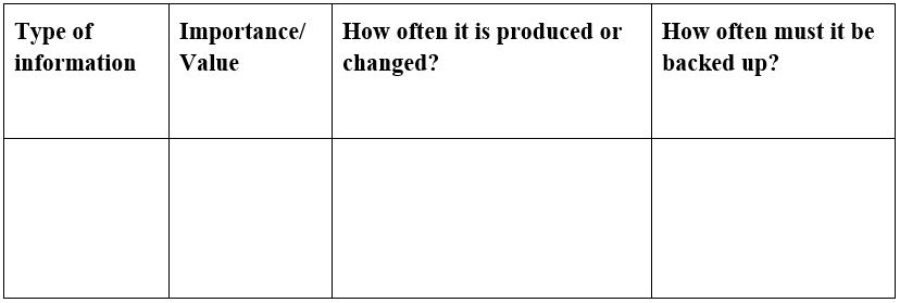 Step 3 | Now that participants have filled out the backup format template, ask them to review the types of information (and their respective importance or value) on their lists again – as they do so, have them consider what might happen if that information were to fall into the hands of an adversary, or if they were to lose that information entirely. What kind of impact would this have on them personally or on their organization?